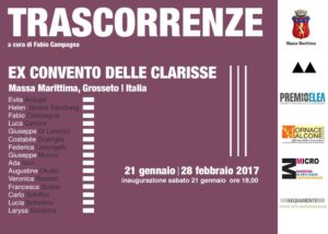 Trascorrenze è un progetto pensato per gli spazi del Convento delle Clarisse di Massa Marittima come un opera d’arte aperta che indaga il concetto di tempo/vita; che esprime una simbiosi con la natura; che percorrere un luogo, uno spazio, passando oltre con la mente. Trascorrenze vuole essere un progetto che nasce come sentimento nuovo di una fantasia che attraversa da un’immagine all’altra, da un sogno all’altro; che travalica quei limiti imposti dalle regole, dal senso di equilibrio, dal dominio di sé; che non compie atti di violenza sulla natura che oltrepassa i limiti della propria natura (Costabile Guariglia). Partner: Fornace Falcone, Salerno-Spazio Nea, Napoli-Corpo6 Galery, Berlino-Micro Arti Visive, Roma. Con il patrocinio del Comune di Massa Marittima, (GR) – Assesorato alle Politiche Culturali.In esposizione a TRASCORRENZE le opere Maria de M. e Lucrezia P.