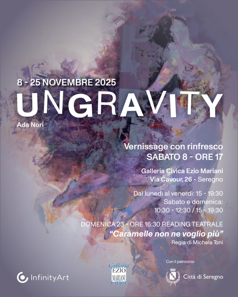 Ungravity” è un invito a elevarsi, a guardare oltre il peso dell’esistenza per riscoprire la bellezza di ciò che si trasforma. In mostra nuove opere che hanno come filo conduttore l’assenza di gravità in un contesto di fusione tra figurazione e astrazione. In questa personale convivono leggerezza e intensità, forma e dissolvenza, materia e spirito.