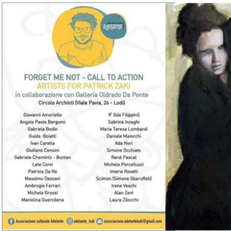 Tra gli oltre 25 artisti che hanno risposto alla call per “Free Patrick Zaki”, ci sono anch’io con l’opera Sodales, olio su tela, 50×60.