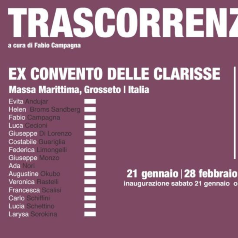 Trascorrenze è un progetto pensato per gli spazi del Convento delle Clarisse di Massa Marittima come un opera d’arte aperta che indaga il concetto di tempo/vita; che esprime una simbiosi con la natura; che percorrere un luogo, uno spazio, passando oltre con la mente. Trascorrenze vuole essere un progetto che nasce come sentimento nuovo di una fantasia che attraversa da un’immagine all’altra, da un sogno all’altro; che travalica quei limiti imposti dalle regole, dal senso di equilibrio, dal dominio di sé; che non compie atti di violenza sulla natura che oltrepassa i limiti della propria natura (Costabile Guariglia). Partner: Fornace Falcone, Salerno-Spazio Nea, Napoli-Corpo6 Galery, Berlino-Micro Arti Visive, Roma. Con il patrocinio del Comune di Massa Marittima, (GR) – Assesorato alle Politiche Culturali.In esposizione a TRASCORRENZE le opere Maria de M. e Lucrezia P.