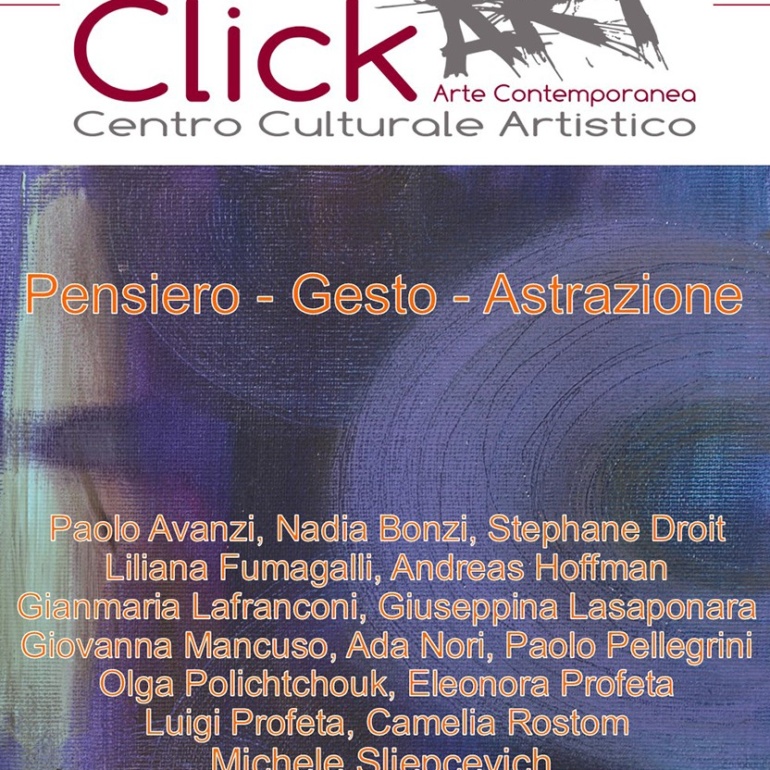Cosa si nasconde nel pensiero di un’artista? Quale gesto pittorico si impone sulla tela? Fino a che punto può arrivare l’astrazione? Questa è la sfida che Click ART lancia con la 5^ edizione della collettiva “Pensiero – Gesto – astrazione”, in Via Dall’Occo 1, a Cormano. Inaugurazione il 29 aprile 2023 alle 17.30. In esposizione anche tre mie opere.