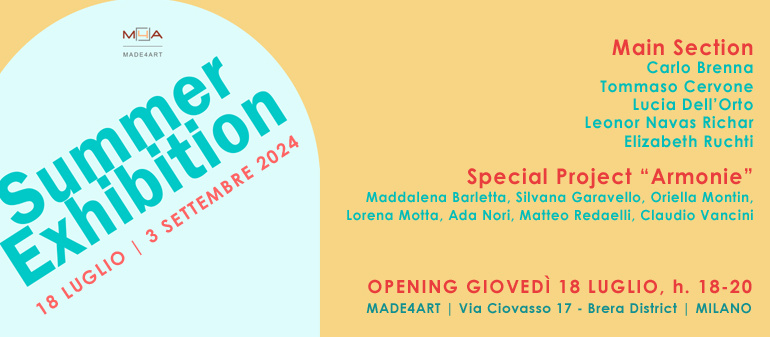"Summer Exhibition" è la tradizionale esposizione di MADE4ART dedicata al tema dell’estate che si svolgerà presso la galleria di Via Ciovasso 17, a Milano, nel cuore di Brera. La mostra vuole evidenziare la capacità dell’arte di rappresentare il tema dell’estate come momento di massima energia e forza vitale, attraverso soggetti, colori, materiali e tecniche di realizzazione. L’opening è fissato per giovedì 18 luglio, dalle 18 alle 20 e la mostra resterà aperta fino al 3 settembre con ingresso gratuito. Io partecipo con l’opera “Bambina al mare”.